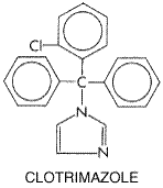 concentrations of 0.2 to 0.35 In a small fraction of recipients, clotrimazole on the skin may cause stinging, erythema, edema, vesication, desquamation, pruritus, and urticaria. When it is applied to the vagina, about 1.6% of recipients complain of a mild burning sensation and, rarely, of lower abdominal cramps, slight increase in urinary frequency, or skin rash. Occasionally, the sexual partner may experience penile or urethral irritation. By the oral route, clotrimazole can cause gastrointestinal irritation. In patients using troches, the incidence of this side effect is about 5%. Therapeutic Uses Clotrimazole is available as a 1% cream, lotion, and solution ( LOTRIMIN MYCELEX), 1% or 2% vaginal cream or vaginal tablets of 100, 200, or 500 mg (GYNELOTRIMIN MYCELEX G), and 10-mg troches (MYCELEX). On the skin, applications are made twice a day. For the vagina, the standard regimens are one 100-mg tablet once a day at bedtime for 7 days, one 200-mg tablet daily for 3 days, one 500-mg tablet inserted only once, or 5 g of cream once a day for 3 days (2% cream) or 7 days (1% cream). For nonpregnant females, two 100-mg tablets may be used once a day for 3 days. Troches are to be dissolved slowly in the mouth five times a day for 14 days. Clotrimazole has been reported to cure dermatophyte infections in 60% to 100% of cases. The cure rates in cutaneous candidiasis are 80% to 100%. In vulvovaginal candidiasis, the cure rate is usually above 80% when the 7-day regimen is used. A 3-day regimen of 200 mg once a day appears to be similarly effective, as does single-dose treatment (500 mg). Recurrences are common after all regimens. The cure rate with oral troches for oral and pharyngeal candidiasis may be as high as 100% in the immunocompetent host. Econazole Econazole, the deschloro derivative of miconazole, has the following structure: