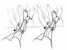 Fig. 29-87 Restarea lig. Colateral int. se face aplicand o forta de valg in extensie (pt. LIA Si LCI) sau 30 grade de flexie (pt. LIC)