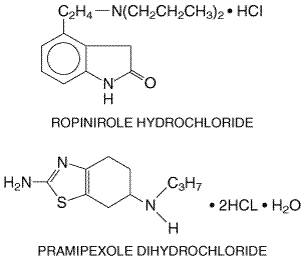 orthostatic hypotension. The actions of dopamine at Dopamine-Receptor Agonists An alternative to levodopa is the use of drugs that are direct agonists of striatal dopamine receptors, an approach that offers several potential advantages. Since enzymatic conversion of these drugs is not required for activity, they do not depend on the functional capacities of the nigrostriatal neurons and thus might be more effective than levodopa in late PD. In addition, dopamine-receptor agonists potentially are more selective in their actions; unlike levodopa, which leads to activation of all dopamine receptor types throughout the brain, agonists may exhibit relative selectivity for different subtypes of dopamine receptors. Most of the dopamine-receptor agonists in current clinical use have durations of action substantially longer than that of levodopa and often are useful in the management of dose-related fluctuations in motor state. Finally, if the hypothesis that free radical formation as a result of dopamine metabolism contributes to neuronal death is correct, then dopamine-receptor agonists have the potential to modify the course of the disease by reducing endogenous release of dopamine as well as the need for exogenous levodopa (Goetz, 1990). Four dopamine-receptor agonists are available for treatment of PD: two older agents bromocriptine (PARLODEL) and pergolide (PERMAX); and two newer, more selective compounds, ropinirole (REQUIP) and pramipexole (MIRAPEX). Bromocriptine and pergolide are both ergot derivatives and share a similar spectrum of therapeutic actions and adverse effects. Bromocriptine is a strong agonist of the D2 class of dopamine receptors and a partial antagonist of the D1 receptors, while pergolide is an agonist of both classes. Ropinirole and pramipexole (Figure 228) have selective activity at D2 class sites (specifically, at the D2 and D3 receptor proteins) and little or no activity at D1 class sites. All four of the drugs are well absorbed orally, and have similar therapeutic actions. Like levodopa, they can relieve the clinical symptoms of PD. The duration of action of the dopamine agonists often is longer than that of levodopa, and they are particularly effective in the treatment of patients who have developed on/off phenomena. All four also may produce hallucinosis or confusion, similar to that observed with levodopa, and may worsen orthostatic hypotension.