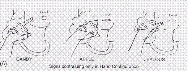 The features of the manual language depends on the four basic kinds of articulatory parameters in the production of articulation of signs as Bonvillain (2003) says: Hand configuration, Place of articulation, Movements of Hands, and Orientation.