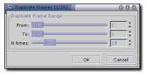 You can only change the name part. The rest needs to be exactly the way shown. GAP works on series of .xcf images, so that you can work with layers the same way as you do in static images. You don't have to copy the file yourself to add a frame. GAP has series of functions to help you manage frames. We'll create a 20 frame animation, so the first thing will be to copy the first frame 19 times using the video/duplicate frames function.