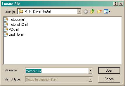 Select Motorola USB Composite Bus Device Driver or MTP Device.