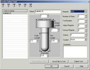 Go to Tools tab, Click on In the Name field, type in BallMill0.25 and choose the Save As New Tool button to save the tool. |