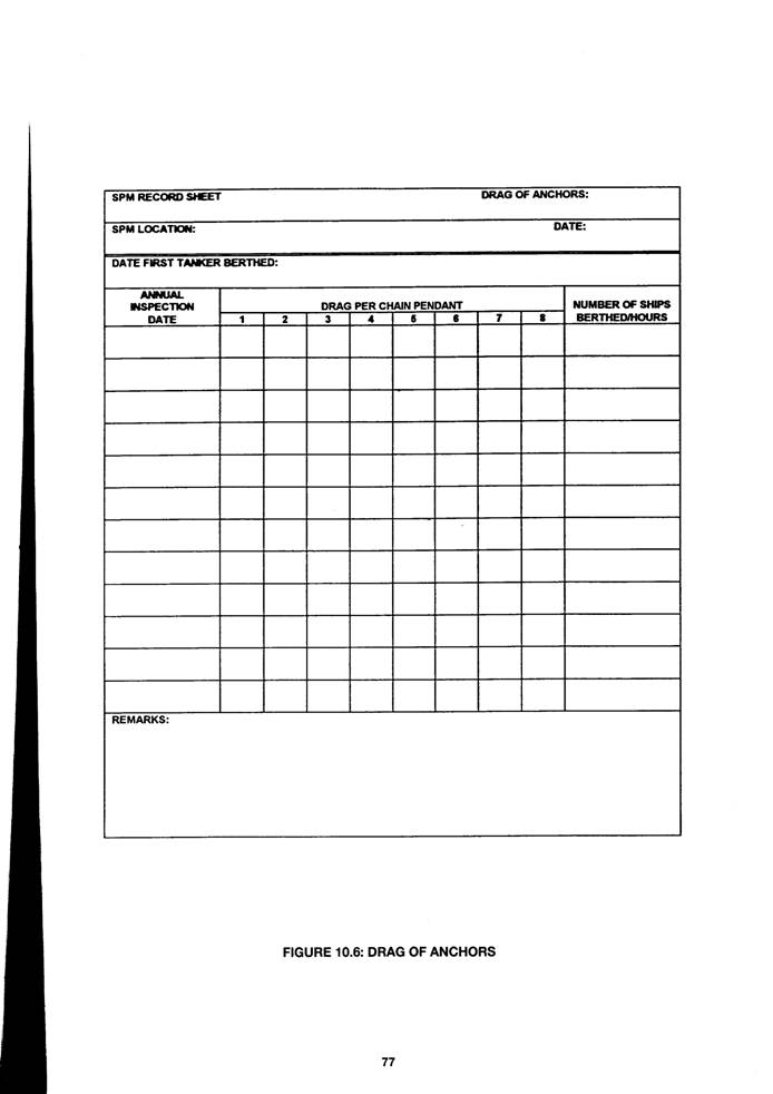 The information contained in the data sheets is useful for relating failures back to specific exceptional conditions. It also enables operating staff to prepare for similar circumstances in the future. A sample of an 'Operating Mooring Data Sheet' is given