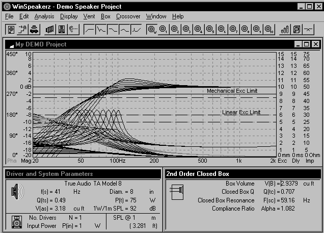 WinSpeakerz will show you the range of possible responses for a driver. Turn on those responses you'd like to see from the toolbar. Enter a 0 in the Box Volume field, VB, followed by Ctrl+F.