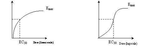 It is a curve measuring the response of a particular receptor-effector system against increasing concentrations of the drug. The data on semi-logarithmic axes usually results in a sigmoid curve.
