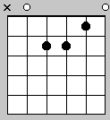 This next shape is slightly out of place here as it is a dmin7 arpeggio rather than just a simple triad arpeggio - however I have included it as I use it a lot with the above patterns. Note that the lowest note on the e string is at the 9th fret - it looks a bit like an 8 in the tablature. :o)