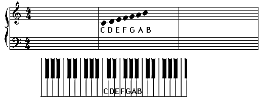 the keys properly labeled, with a staff showing where each note is located. In