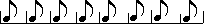 We could keep going, theoretically, forever! However, let's just do one more for now. Here are notes of even shorter value, called eighth notes. They look like quarter notes with flags: