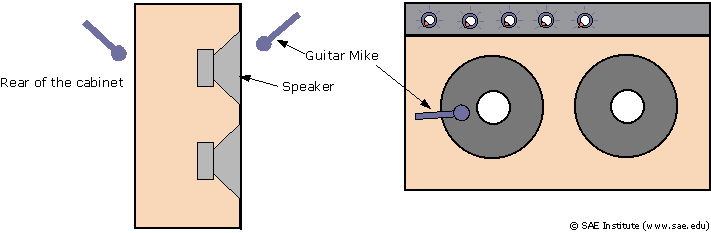 You will note the mike at the rear of the cabinet. This mike has a boxier sound than the front mike and is 180 degrees out of phase to the front mike so a phase reveral is required. Remember when setting the sound of an amplifier to put your head where the microphone is. The front of a standard amp is directional and if you stand above the amp you won't get the true sound coming from the speaker. The microphone used must be capable of handling high sound pressure levels.