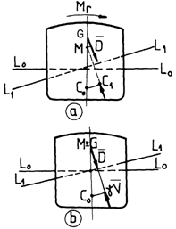 c) If h = 0, the metacentre and the centre of hull will superpose (fig.4.9 b). Consequently, the restoring moment will be nil, and the body will float in equilibrium on the slanting floating.
