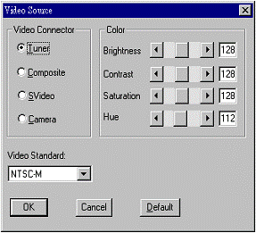 Click to select the video input source. You can change the brightness, contrast, saturation and hue by scroll bar and see the effect in the video display window.
