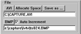 Press the BMP button to set the filename to save the still image. The filename will be shown in the dialog box; default is capture.bmp.