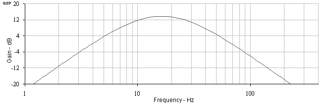 I eventually decided on a 20Hz minimum frequency (-3dB), and this is reflected in the component values shown in Figure 1. The actual roll-over frequency is 16.5Hz, after which the output is attenuated at about 12dB / octave (see Figure 2). Without the rolloff capacitors, the gain would be 20dB at 20Hz. Unity gain frequencies are about 4Hz and 63Hz with the pot 20k centred.
