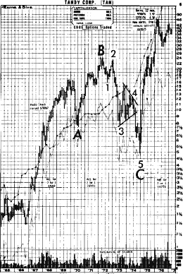 The termination of the 1-2-3-4-5 Elliott down wave in late 1974 suggested a major buying point.