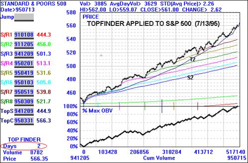 bottoms. The on balance volume in turn provides a measure of the