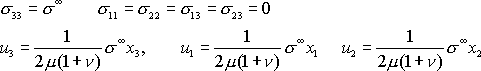 Even more disturbingly, the crack opening displacements show the same oscillatory character. This means that the solution predicts that the crack faces overlap near the crack tip, which is clearly unphysical.