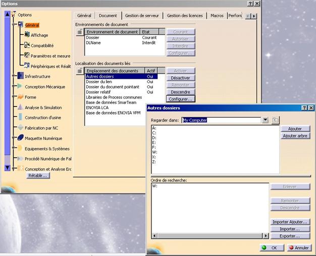 Les options sélectionnées dans le menu : Outils/Options/…conditionnent profondément le fonctionnement de CATIA. On pourra paramétrer en particulier :