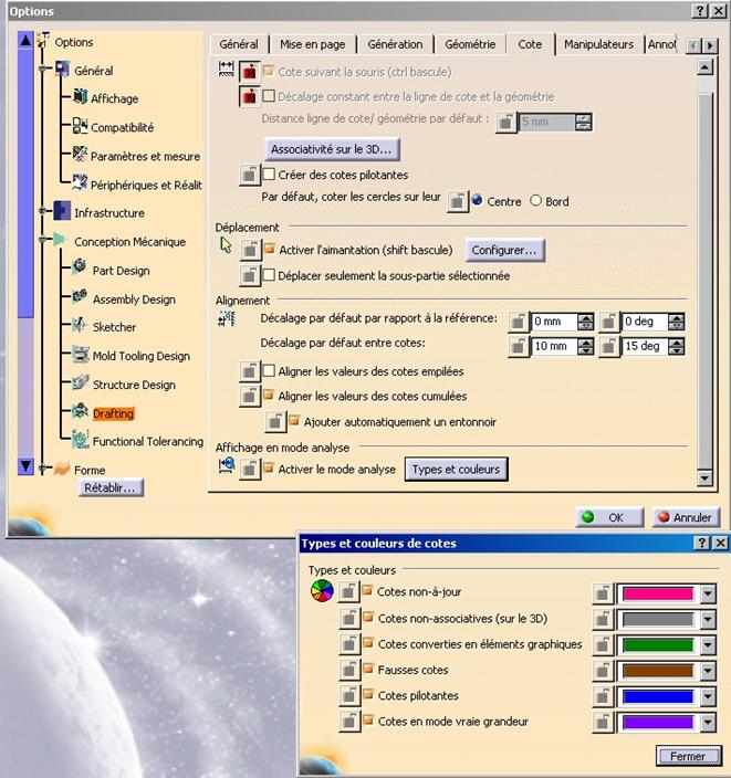 CONFIG MENU 17 : Outils/Options/Conception Mécanique/Drafting/Cote