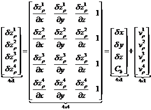 Tipiko GDOP skaičiavimo pavyzdys. Keturių palydovų atvejis | ||