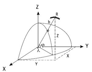 ECEF koordinačių sistema. Koordinačių transformavimas tarp ECEF ir LLA | ||