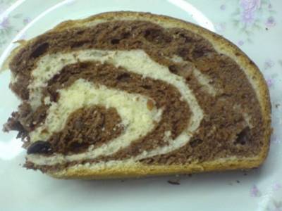 1 kg liszt 4dkg élesztő 7 dl tej 2 db. tojás csipet só 10 evőkanál cukor 15 dkg margarin 3 evőkanál kakaó 1 teáskanál őrölt fahéj és pici tej 1 csomag (10 dkg) mazsola |