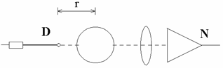 Na ruchomym ramieniu umieszczamy detektor punktowy D. Notujemy wskazanie napięcia i położenie detektora r. Następnie obracamy detektor o 90 wokół osi poziomej i w tej samej odległości r ponownie odczytujemy napięcie.