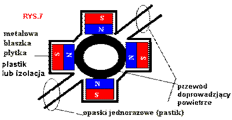 magnesy do przewodu należy skierować biegunem północnym(-),dodatkowo należy rozstawić