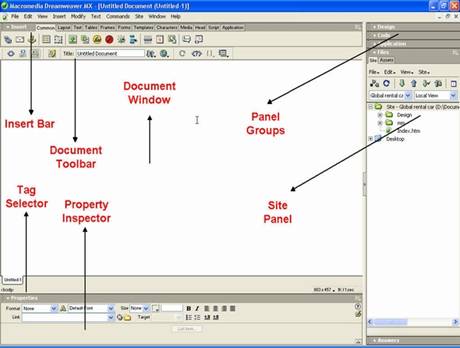 Slika 1.2.3. Dreamweaver MX radna povrina |