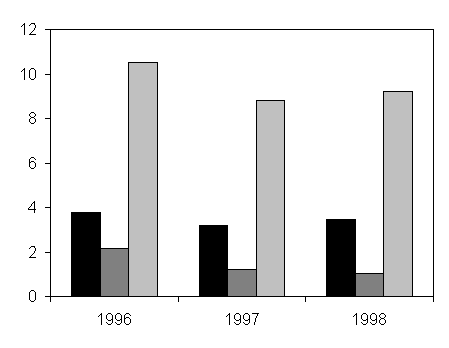 Creantele au scazut progresiv cu 27% in 2001 fata de 2000 si cu inca 23% in 2002 ceea ce a influentat favorabil fluxul de disponibilitati.