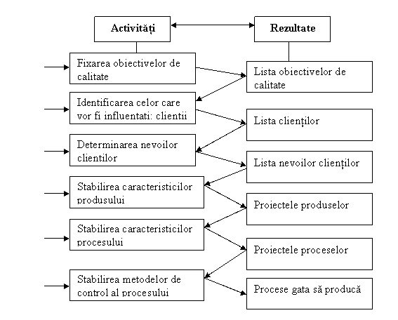 1.Internalizarea relatiilor de tip client- furnizor. Respectarea cerintelor de calitate pe intreaga traiectorie de realizare a produsului, presupune abordarea fiecarei activitati in stransa legatura cu activitatile din amonte si aval, adica o extrapolare de tip client-furnizor extern, la toate legaturile functionale si operationale ale intreprinderii (fig.7).