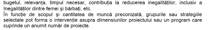 stabilite la lansarea programului - etapa eliminatorie), calitatii popunerilor