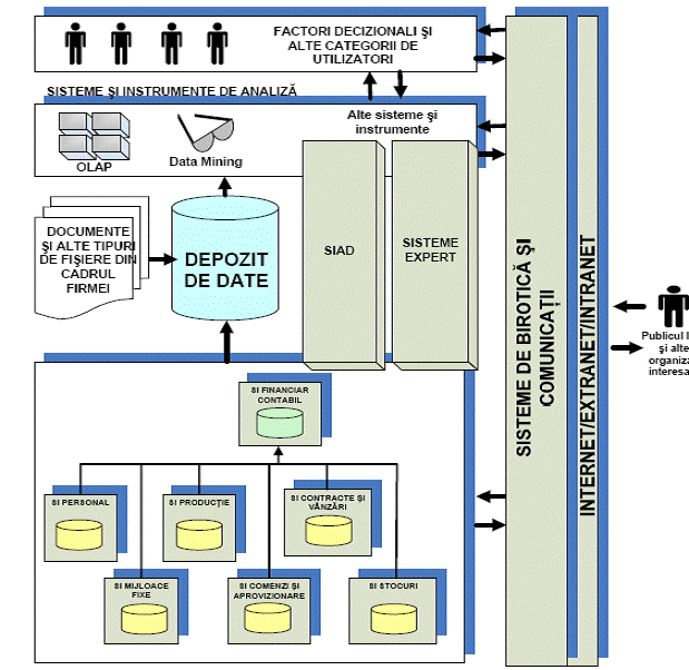 - Sisteme de analiza bazate pe tehnologii noi, cum ar fi: OLAP, Data Mining, etc.