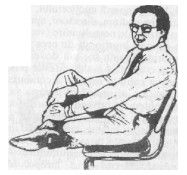 incrucisarea sau impletirea bratelor sau picioarelor sugereaza ca avem de-a face cu o atitudine negativa sau defensiva si acesta este cazul si cu incrucisarea gleznelor. La barbati acest gest este adesea insotit de asezarea pumnilor pe genunchi sau de apucarea stransa cu amandoua mainile a bratului scaunului (Figura 87). Versiunea feminina difera oarecum: genunchii sunt alaturati, labele picioarelor usor intoarse intr-o parte, iar mainile asezate una langa alta sau una peste alta, pe coapse (Fisura