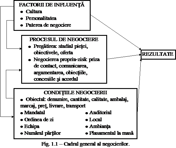 factorii generali de influenta, care preexista procesului de negociere. Acestea se refera la cultura din care vin partenerii, la personalitatea negociatorilor si la puterea de negociere a partilor.