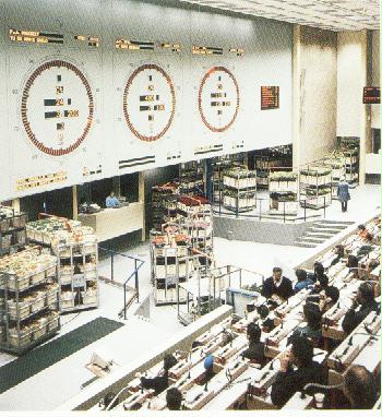 zona de distributie. Daca este plin, caruciorul este dus in zona de