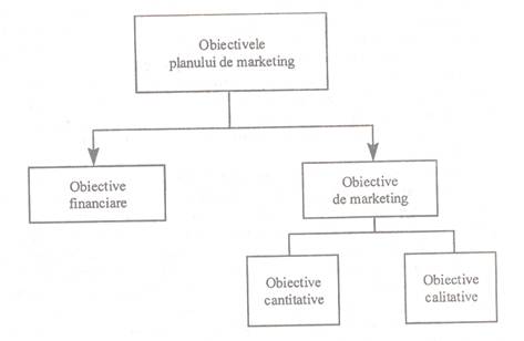 O prima categorie include obiectivele financiare, care sunt preluate din planul strategic al firmei, cum sunt, de exemplu, cifra de afaceri, valoarea vanzarilor, nivelul profiturilor etc. In cazul in care se elaboreaza planul pentru un anumit produs, este necesara delimitarea clara a aportului produsului respectiv la indeplinirea obiectivelor de ansamblu ale firmei.