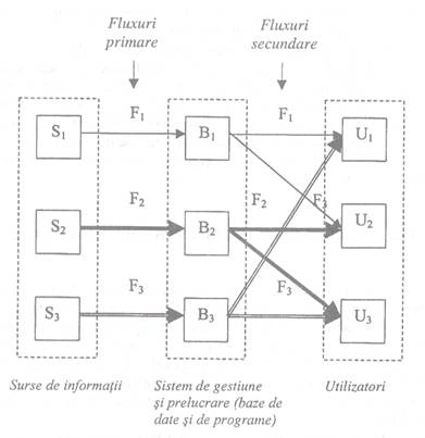 Fluxurile secundare constituite intre bazele de date si utilizatori au drept fundament scopul in care sunt folosite informatiile, generand, asa cum s-a mai aratat, sisteme diverse cum sunt cele de: analiza a pietei, managementul vanzarilor, telemarketingul etc.