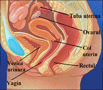 -el comunica in partea superioara cu colul uterin, iar in partea inferioara cu vulva;