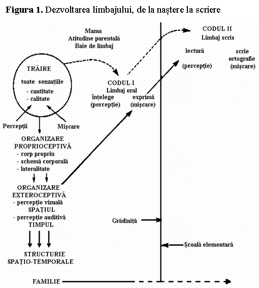 In figura 1 este prezentata schematic dezvoltarea limbajului pana in perioada de incepere a scolaritatii.
