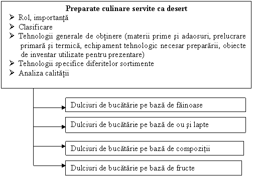 PREPARATE CULINARE SERVITE CA DESERT Preparatele culinare servite ca desert sunt dulciurile de bucatarie, care se pot servi in momente diferite ale zilei, la dejun sau cina, la gustarea de la ora 10 sau de la ora 17.Citeste tot ... 2330 cuvinte