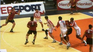 Spatiile de schimb se afla in afara liniei de margine, in stanga si in dreapta prelungirii liniei de mijloc, pana la capatul bancii de schimb corespunzatoare, si daca spatiul permite, si in spatele bancilor (Regulamentul de joc: Fig. 1) Reglementarile pentru evenimentele IHF si ale federatiilor continentale stabilesc ca bancile de schimb incep de la 3.5 metri de linia de mijloc. Aceasta este o recomandare valabila pentru jocuri, la toate celelalte niveluri In fata bancilor de schimb, la linia de margine, nu este permisa amplasarea nici unui obiect (pentru cel putin 8 metri de la linia de mijloc). In spatiul de schimb au dreptul sa stea numai jucatorii si oficialii unei echipe, care sunt inscrisi in raportul de joc (regula 4:1-2). In cazul in care este necesar un translator, acesta trebuie sa ia loc in spatele bancii de rezerve. In spatiul de schimb, oficialii echipei trebuie sa poarte echipament complet, sportiv sau imbracaminte civila. Cronometrorul si scorerul vor ajuta arbitrii la monitorizarea ocupantilor spatiului de schimb inaintea si in timpul jocului. Daca, inaintea inceperii jocului, exista neregularitati privitoare la regulile spatiului de schimb, jocul poate incepe doar atunci cand neregularitatile au fost inlaturate. Daca aceste neregularitati apar in timpul jocului, jocul nu poate fi continuat, dupa prima intrerupere, decat dupa ce neregularitatile au fost inlaturate. Oficialii unei echipe au dreptul si indatorirea de a-si conduce si indruma echipa, chiar si in timpul jocului, intr-o maniera corecta si in spirit sportiv, in limitele regulamentului. In principiu, ei trebuie sa stea pe banca de rezerve a echipei. Totusi, oficialilor le este permis sa se miste in spatiul de schimb, in special pentru: a conduce schimbarea jucatorilor a da indicatii tactice jucatorilor din teren si de pe banca de rezerve a acorda ingrijiri medicale a solicita time-out de echipa a comunica cu scorer/cronometrorul. Acest lucru este valabil numai pentru oficialul responsabil de echipa si numai in situatii deosebite (vezi regula 4:2) Permisiunea de a se deplasa este valabila, de regula, numai pentru un singur oficial pentru fiecare echipa. Oficialul echipei, care se deplaseaza, trebuie sa respecte limitele spatiului de schimb - dupa cum a fost definita la punctul 1 de mai sus. Oficialul echipei nu trebuie sa impiedice vizibilitatea scorer/cronometrorului In principiu, jucatorii aflati in spatiul de schimb trebuie sa stea pe banca de rezerve. Jucatorilor le este, totusi, permis sa: sa se incalzeasca fara minge in spatele bancii de schimb, daca spatiul o permite, si nu deranjeaza desfasurarea jocului. |