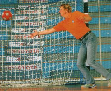 Aceasta pozitie initiala trebuie corectata. Executantul sta la mai mult de 1 metru de linia de 7m |