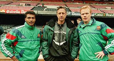 (Foto 2 - Johan Cruyff, antrenorul Barcei, alaturi de Romario si Ronald Koeman)