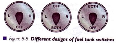 Comutarea de pe un rezervor pe altul are o istorie notorie, cu multe motoare oprite din lipsa de combustibil, desi mai era suficient combustibil pentru functionarea lor. Greseala comutarii este adesea rezultatul unui design slab si, daca va uitati la numeroase avioane usoare veti observa o multitudine de variante de comutatoare pentru rezervoarele de combustibil. La unele aeronave consumul de combustibil se face din toate rezervoarele in acelasi timp, la altele mai intai din cele din stanga, apoi din cele din dreapta, altele au toate rezervoarele inchise, avand comutattorul in pozitia inainte, altele invers, spre inapoi. Trebuie sa stiti cum lucreaza cel folosit de dvs, cum este pozitionat in cabina, pentru a fi siguri de felul in care operati cu acesta. Este bine sa verificati buna functionare a sistemului de combustibil inainte de zbor. Daca un motor din doua cedeaza, aeronava va atinge centrajul limita lateral, numai daca nu se intampla ca alimentarea sa continue din rezervoarele din aripa cealalta. Totusi, lipsa de combustibil poate sa apara, chiar daca in aripa cealalta exista rezervoare cu combustibil.