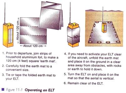 ELT este cel mai bun mijloc de a identifica pozitia unei aeronave cazute. Este un dispozitiv electronic, pe baza de baterie, care transmite un semnal radio distinctiv. Acest echipament se activeaza automat la impactul dur cu solul sau apa sau poate fi activat de pilot dupa o aterizare fortata efectuata cu succes.
