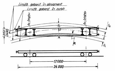Sporul de distanta in tabela, calculat cu relatiile indicate, sunt rotunjite in plus. Suprainaltarea h este sporita cu 25% fata de cea normala prevazuta in reglementarile CFR.