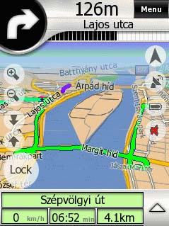 Marind harta, ati constatat ca iGO v-a configurat traseul pe podul Petőfi ce poate fi foarte aglomerat la acea ora. De aceea, decideti sa mergeti pe podul Lgymnyosi.