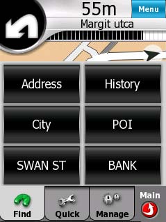 Pentru configurarea traseului fara GPS, aveti nevoie doar de o harta, pe care o puteti accesa atingand butonul Harta (4.5) din Meniul Principal. Daca nu cunoaste pozitia GPS actuala, iGO va porni toate traseele de la ultima pozitie GPS inregistrata. In cazul de fata Dumneavoastra aveti un alt punct de plecare, deci in primul rand acesta va trebui selectat din baza de date.