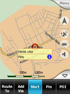 Oraselul din care porniti e unul mic, deci puteti decide sa nu porniti de la adresa exacta. In acest caz, centrul orasului va reprezenta punctu de plecare al Dumneavoastra. Din momentul in care veti ajunge la acel punct si veti porni GPS-ul, iGO va recalcula traseul pornind de la pozitia GPS actuala.